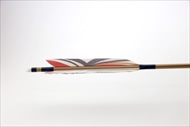 小山矢オリジナル羽根。代々受け継がれてきた技法と伝統を大切にした技術に斬新な新しい発想を加え、矢師が1本1本想いをこめて作っている弓具です。